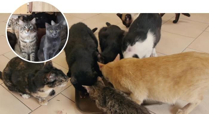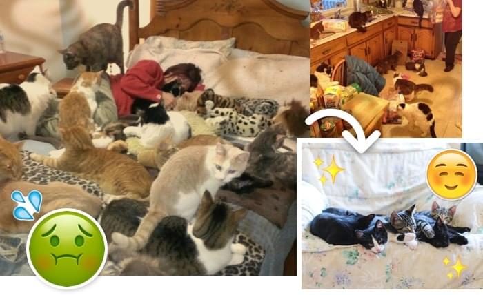 She has 14 cats living in her part of the house. Not only that, but we have other pets in the house!